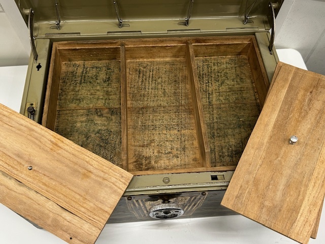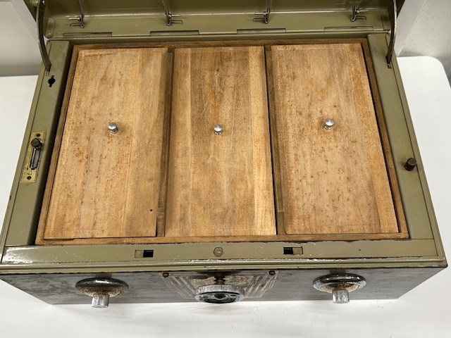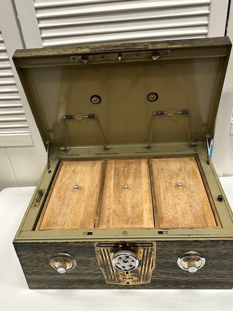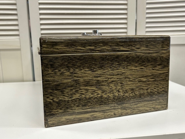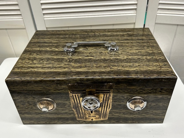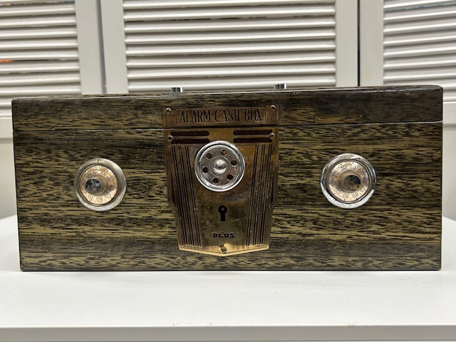 | 【昭和レトロ】 PLUS プラス ALARM CASH BOX 手提げ金庫 木目調 アラームキャッシュボックス 鍵欠 インテリア ディスプレイ |