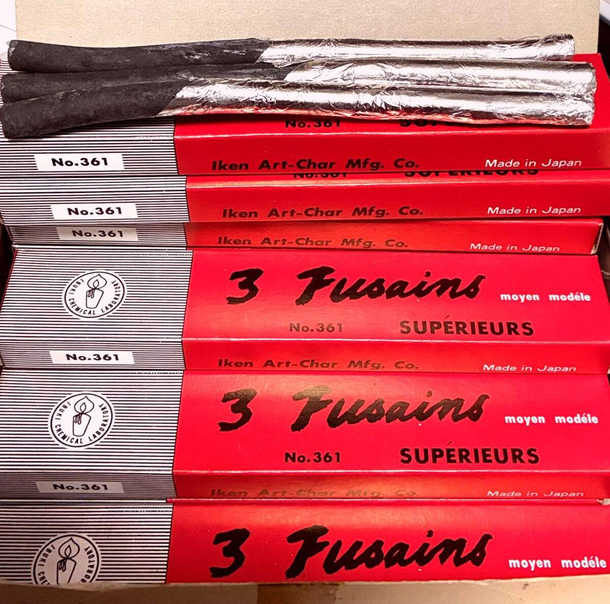 高品質な伊研の画用木炭、桑(くわ)炭1ダース(12箱セット)1箱3本入り。