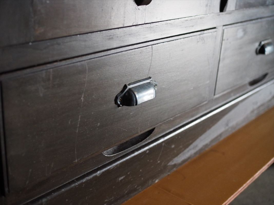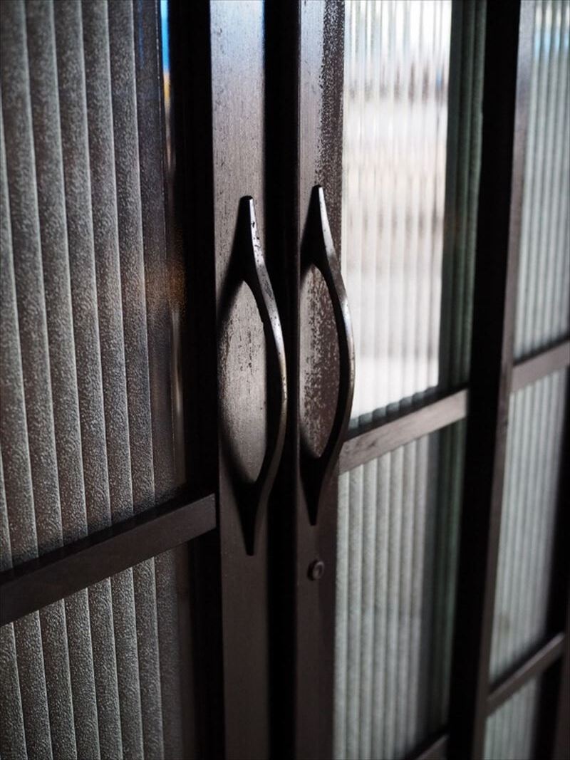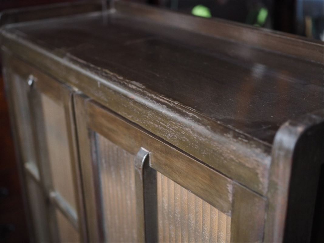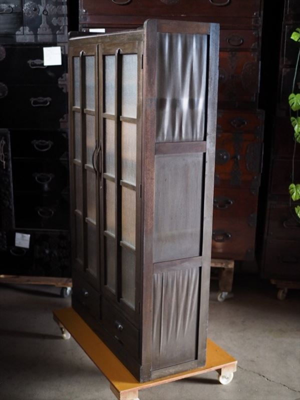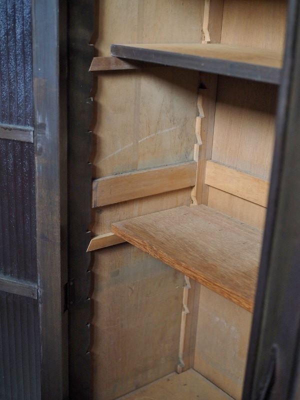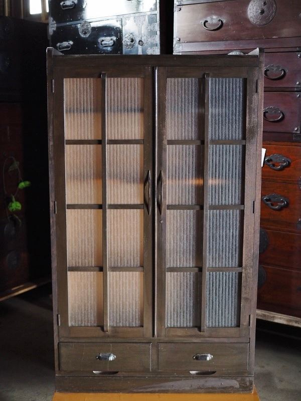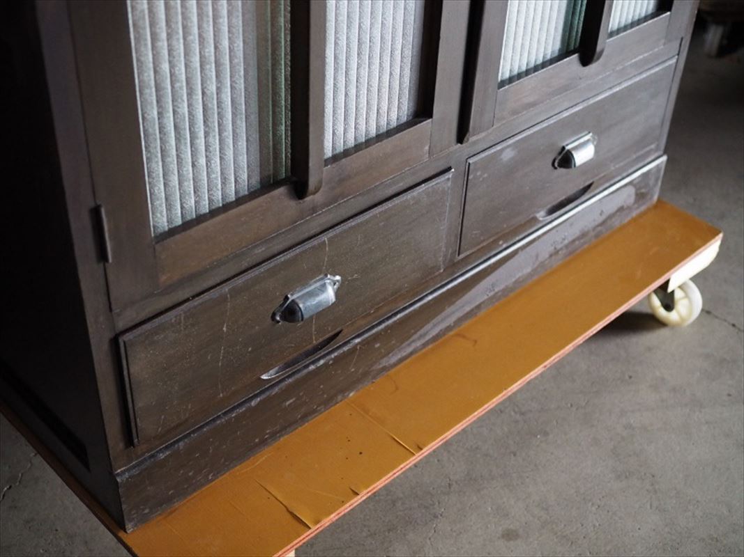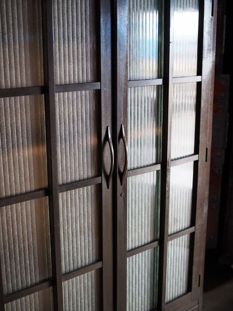 | 昭和レトロなモールガラスキャビネット 側面板波ありアウトレット品 昭和中期 古録展 送料別 Mサイズ 中古 品番S10741 | |