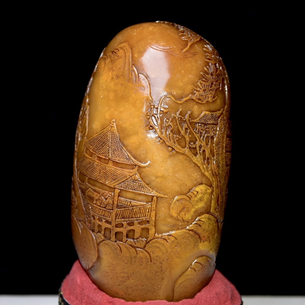 ◆御泓軒◆『清朝時代 寿山石 田黄石彫 人物物語置物 石卿作 箱付』極細工・古賞物・中国古玩・中国古美術