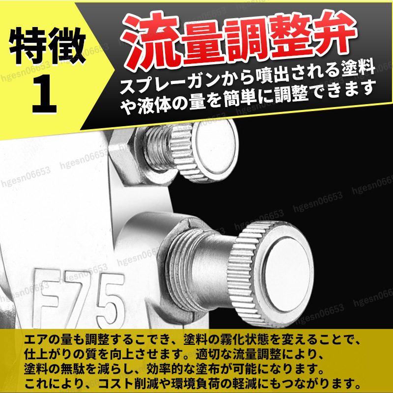 | 本格プロ仕様のエアースプレーガン、吸上 式口径1.5mm、750mlカップ容量の製品をご紹介します。 このスプレーガンは、以下の特徴を持っています 特徴 ★プロ仕様 本格的な塗装作業に対応。 ★使いやすさ DIYユーザーにも適した設計。 ★美しい仕上がり パターン調整できめ細かな塗装が可能。 ★広範囲対応 大きな面積の塗装も簡単 ★吸上式設計 タンクが下部に配置され、塗料を下から吸い上げて散布します。 ★カップ容量 400ccと十分なサイズで、広範囲の塗装が可能です。 ★パターン調整 噴霧キャップの向きを変えることで、平吹きや丸吹きの向きを自由に変更できます。 ★調整機能 エアー量、パターン塗装、塗装幅や方向、塗料濃度も調節可能です。 ★用途の広さ DIY、車の塗装、家具やプラモデルなど、さまざまな用途に対応します。 仕様 ノズル口径:1.5mm 材質:アルミ合金 適用範囲:自動車、家具 スプレー距離:200mm 塗料供給方式/吸上式 吹付空気圧:0.25 0.4MPa 塗料ノズル口径/1.5mm カップ容量/750ml エアインレット:1/4" サイズ(約):幅10.5×高さ33×全長18cm 注意事項 説明書は付属しません。 単体では動作しません。別途エアーコンプレッサーが必要です。 このエアースプレーガンで、あなたの塗装作業をより効率的に、美しく仕上げてみませんか? | ||