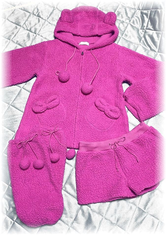 | ■ Deary ・ボアトレーナー ジャケット サイズ M 着丈 60㎝、ポケットあり クマ耳フード、ファスナー全開き ・ショートパンツ 丈 約28㎝ ・レッグウォーマー 長さ 約40㎝ 目立った汚れはありませんが、毛羽立ち、使用感はあります。 自宅保管となりますので、ご理解頂き、ご入札お願いします。 神経質な方・完璧をお求めの方は、ご入札をご遠慮下さい。 (※撮影光により、色のイメージが多少異なるかと思います。) | |||