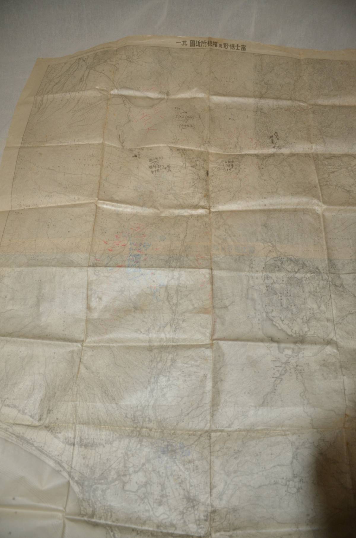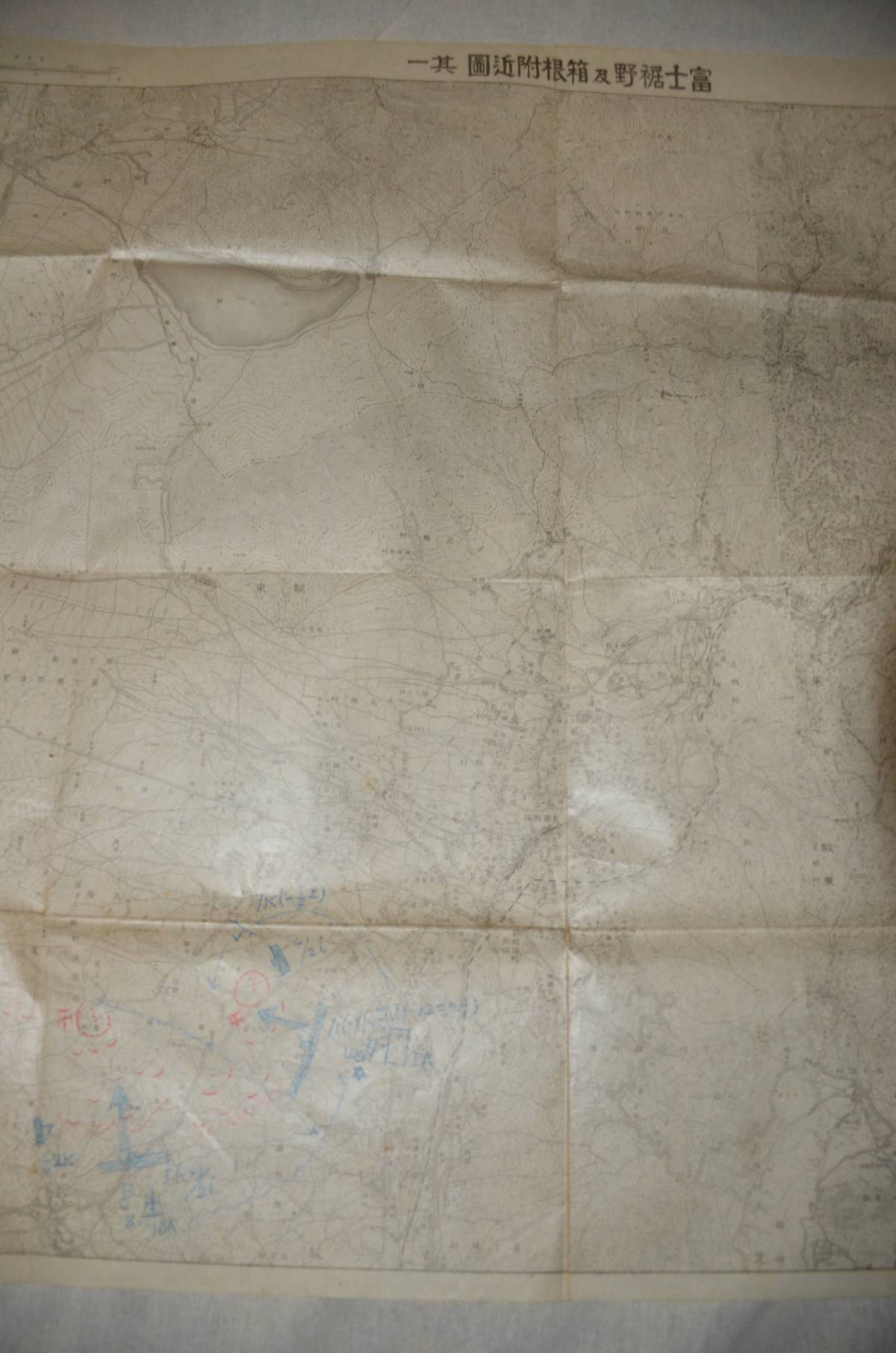 歩兵第68連隊(岐阜)歩兵砲指揮官(中尉)所持の、北富士、東富士、富士山近辺演習場地図6点です。歩兵砲は射程が長いので、富士山近辺の野砲演習場で射撃訓練が行われました。同時に周辺の地形、町での演習地図と思われます。当時の書き込みが入っています。6点一括です。本文下の追加写真もご覧ください。ヤマト運輸ネコポス便で、全国一律210円でお送りさせていただきます。