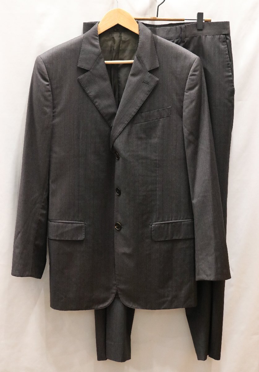 | LOUIS VUITTON ルイヴィトン ジャケット パンツ セットアップ スーツ グレー ストライプ メンズ サイズ52 ウール | ||