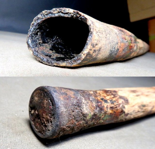 ご覧の外装は、本漆の古木仕様の作りで、合口部分も位置変更で良く計算された新作です。 お手元に置いて、充分に仕込み刀剣としてお楽しみできます。 全体の長さ96㎝ 総重量 860g 〒サイズ120 模造刀身の長さ45.5㎝ 元幅2.85㎝ 元重ね0.59㎝ 先幅1.92㎝ 先重ね0.62㎝(外部の見える部分) 逆さにしても刀身は抜けません 目釘穴は外部から見えないに内部に隠してあります 刀身にグラつきは,「前後はなし、左右は若干あり」 沢山の画像がありますので、最後までご覧・確認・納得願います。 事前の照会と自己責任での入札をお願いします。