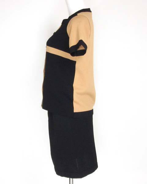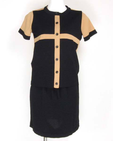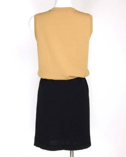 | 洗練されたきっちりスタイル♪ ベージュと黒のコンビネーションがおしゃれで ちょっとしたお出掛けやオフィスまで幅広く使えますね。 セットアップとしても単品使いとしてもいいので 色々なスタイリングを楽しめますよ。 トップスの背面・左脇辺り・前面左脇辺りにほつれがございます。 実寸 トップス 肩幅34cm バスト87cm 着丈55cm 袖丈17cm ワンピース バスト88cm 着丈96.5cm 【サイズ】:(2) 【素 材】:(アセテート77%、ナイロン23%) 【 色 】:(ベージュ×黒) 【程 度】:(AB) 管理番号 2640-20160414-005 499 037 | ||||