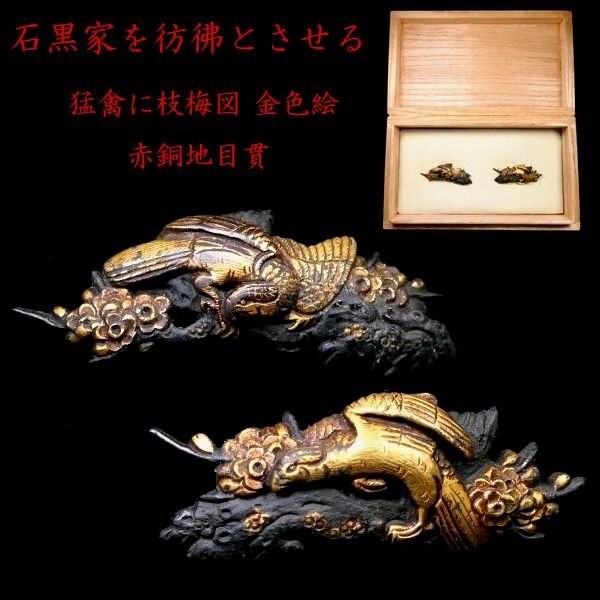 | 商品説明 | ~寸法~ 約 4.10cm× 約 1.47cm 約 3.72cm× 約 1.40cm 華やかな金色絵と 繊細かつ力強き細工により 見応えある猛禽の図が施された一品です。 作行から見て石黒家の作品と推測しております。 詳しくは画像にてご確認下さい。 桐箱がございます。 大切にして頂ける方の元へ届けば幸いでございます。 ~状態~ 全体的に見て状態は概ね良好です。 画像にてご確認下さい。 許容範囲内の時代傷みはご理解下さい。 |