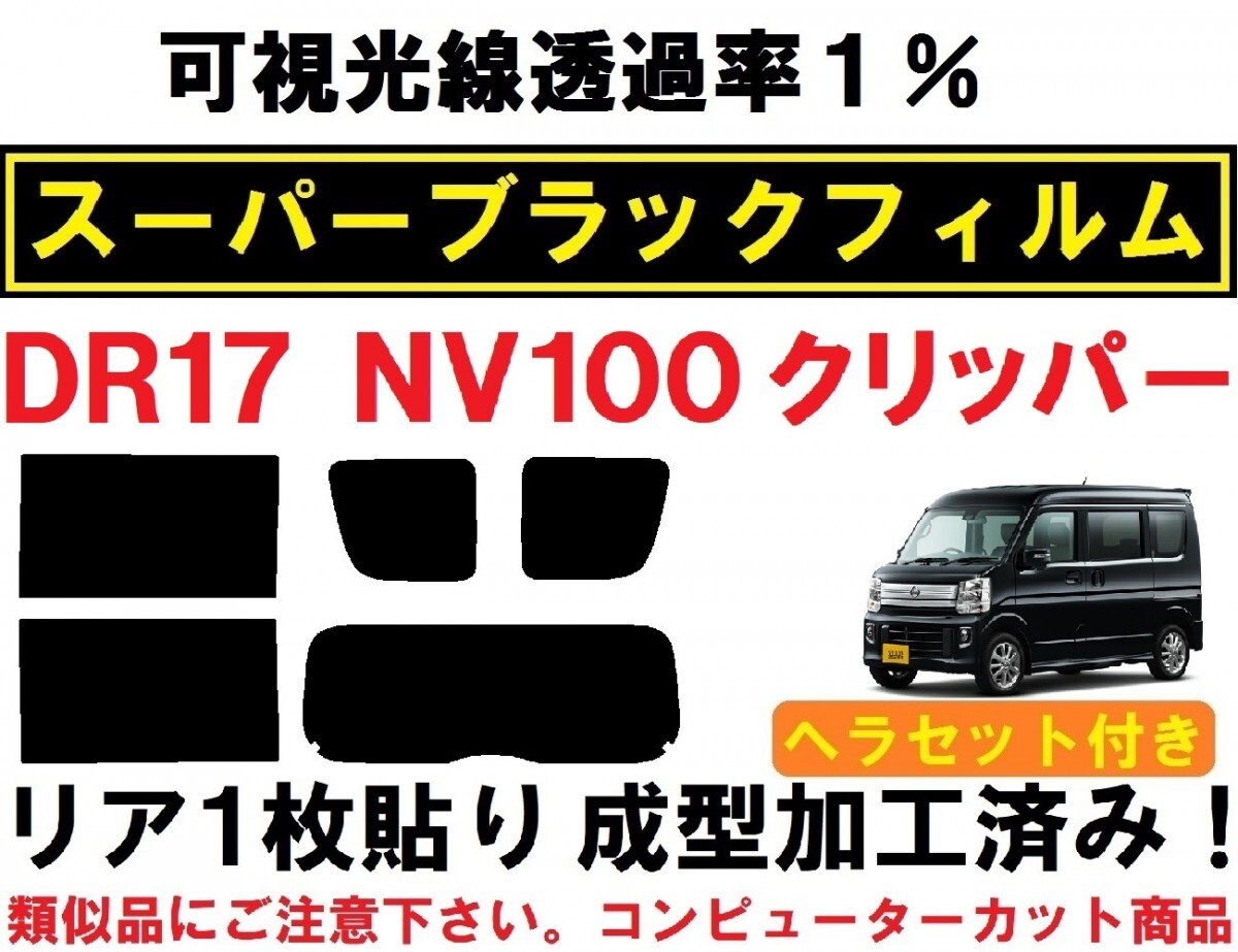 DR17 NV100クリッパー バン・リオ(ワゴン)用スーパーブラック『透過率1%』1枚貼り成型加工済みフィルム、 リア5面セットです。(専用施工液付き) 平成 27 年 3 月 ~ DR17V・DR17W、NV100クリッパー バン・クリッパーリオ(ワゴン)に適合します。 バン・ワゴン 標準ルーフ・ハイルーフなどにより、ガラスの種類が複数有るため 落札後お車の詳細を質問させて頂き、適合する商品をご用意させて頂きます。 ※適合等ご不明な事など御座いましたら、お気軽にご質問下さい。 ◇◆◇当商品には、画像2のヘラセットが付属します◇◆◇ ■滑りの良いシリコンタイプのゴムヘラ スムーズに水切り(清掃)・貼り付け後の水抜きが出来ます。 実際の業務でも色々な物を試しましたが、シンプルなこの形状・このメーカー・このグレードの物が1番使いやすいです。 柔軟性が有りガラス(フィルム)に密着するため、フィルム折れも防げます。 ■使いやすい厚みとコシの有るプラヘラ 形状は似ていても各メーカーにより硬さ・厚みなど色々と有ります。 慣れていない方でも扱い易いように少々柔らか目の物になります。 ヘラ先にはフッ素樹脂加工のクロスを貼って有りますので、滑りが良くキズを防止します。 ■ワイプオール(不織布ワイパー) 布同様の丈夫さと紙の持つ吸水性を発揮。糸くずの発生が無く均一素材のため異物混入の心配が有りません。 施工前のガラスクリーニング~施工時にフィルムが触れる可能性の有るガラスの周りのゴム部品の拭き取り清掃~吸水等に大変便利です。 全て実際の業務に使用している物で、その中から使いやすい物を選んでいます。 ヘラセットがご不用の場合、フィルムのみの商品も有ります。こちら ◇◆◇精密コンピューターカット◇◆◇ 貼りやすさを最優先に各部のサイズ・形状など微調整し、改良を重ねた独自のデータを製作。 高精度な最新・大型カッティングプロッターによるカットで正確で滑らかなカットラインを再現しています。 施工業者だからわかる、貼りやすいサイズ・形状に仕上げています。 ◇◆◇リア1枚貼り成型加工済み◇◆◇ リアガラスの湾曲に合わせて熱成型加工して有りますので、平面に貼るのと同様にたるみが出ず1枚貼り出来ます。 通常の成型加工に加え、独自の加工を施し しっかりと成型加工してありますので、追加工など一切不要です。 ◇◆◇専用施工液付属◇◆◇ 軽視されがちな施工液ですが、貼りやすさに大きく関わる部分になります。中性洗剤などで代用せず、必ず付属の専用施工液をご使用下さい。 濃度については車種・季節などにより変わりますので、個別にお知らせ致します。 ◇◆◇業務用高品質フィルム使用◇◆◇ 使用しているフィルムは、安心の国内メーカー 業務用高品質フィルム「ニュープロテクション」シリーズです。(可視光線透過率1%) 業務用フィルムの中で最も濃いタイプで、紫外線99%カット 遮熱性も高めです。 厚さ48μ、コシが有り他社の1%フィルムより貼りやすいです。 同シリーズで可視光線透過率 5% 10% 15% 25% の物もご用意出来ます。 ご希望の場合は、ご落札後濃さの指定をして下さい。(部分的な色変えも可能です) ご指定の無い場合、全て1%になります。 部分的にフィルムが必要になった場合、単品販売も承ります。 他にもクリッパー用フィルム、各種出品中です。こちらもご覧ください。 ご不明な点など、お気軽にご質問下さい。 | ||
