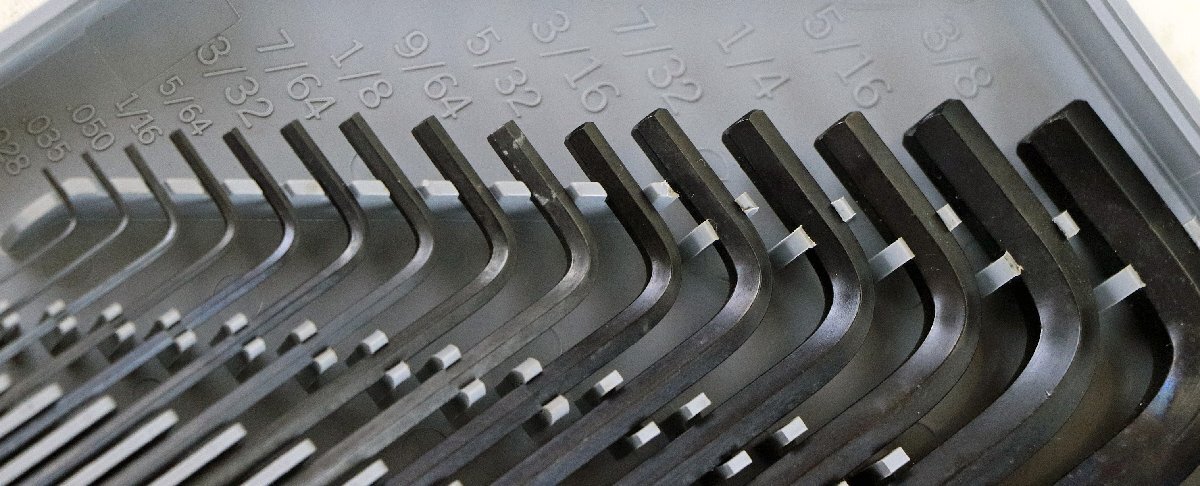 | S●中古品●工具『六角棒 レンチ インチサイズ(0.028-3/8in)15本 メトリックサイズ(0.7-10mm)15本 全30本セット』メーカー不明 ケース付き | |