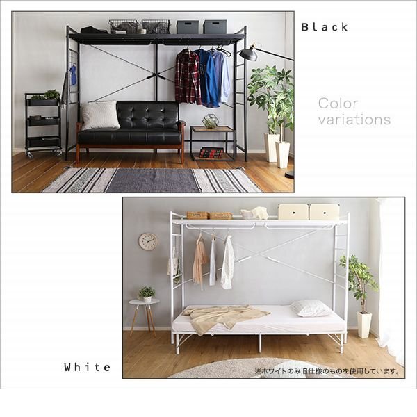 デットスペースになりやすいベッド上の空間を有効活用できるハンガーシェルフ! 邪魔になりにくく、かつ使いやすいを実現しました。 天板耐荷重50㎏で重たいものでも安心しておいて頂けます。 お持ちのベッドがシステムベッドに早変わりします。 便利なサイドメッシュ付きで小物もかけられます。 |