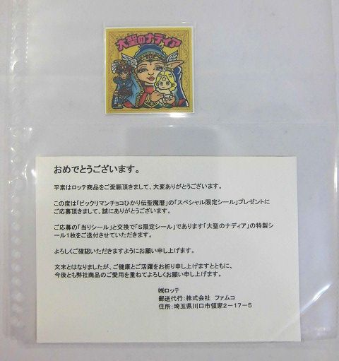 ビックリマン 大聖のナディア ひかり伝 スペシャル限定シール 当選証書あり