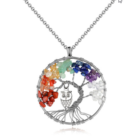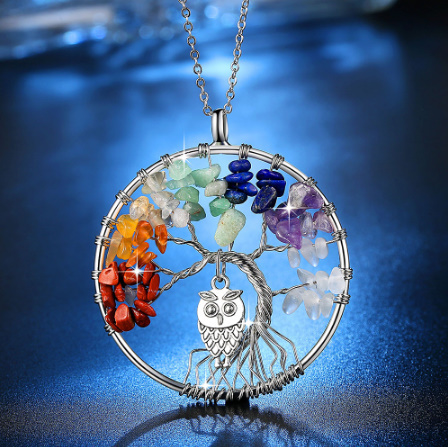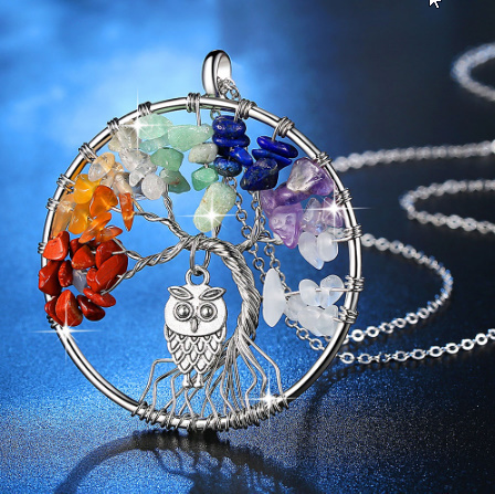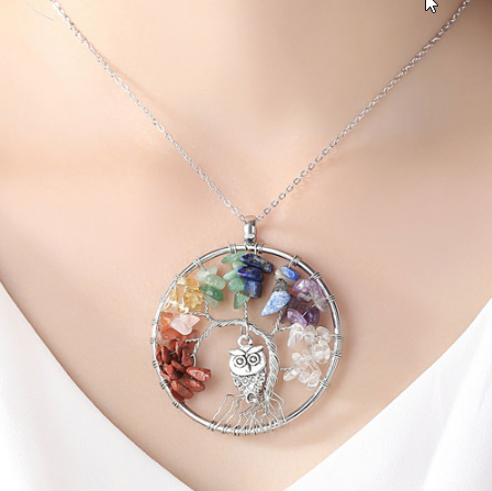 | マルチカラー天然石 ミネラル生命の木 かわいいフクロウネックレス 女性ファッション 結婚式ジュエリー | ||||