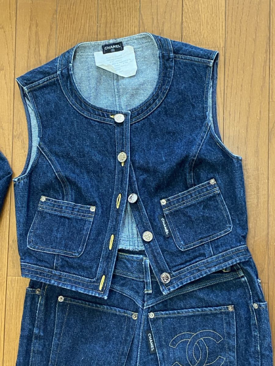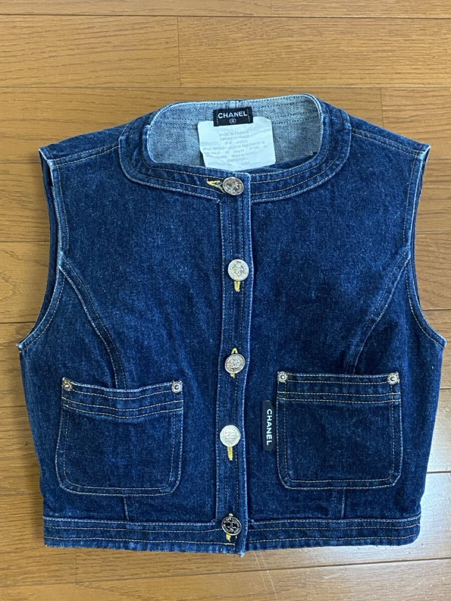 CHANEL96 年 ノースリーブベスト、CCシルバーボタンポケット横にシャネルロゴ ジーンズ デニム| 出价者 | 信用 | 价格 | 时间 |