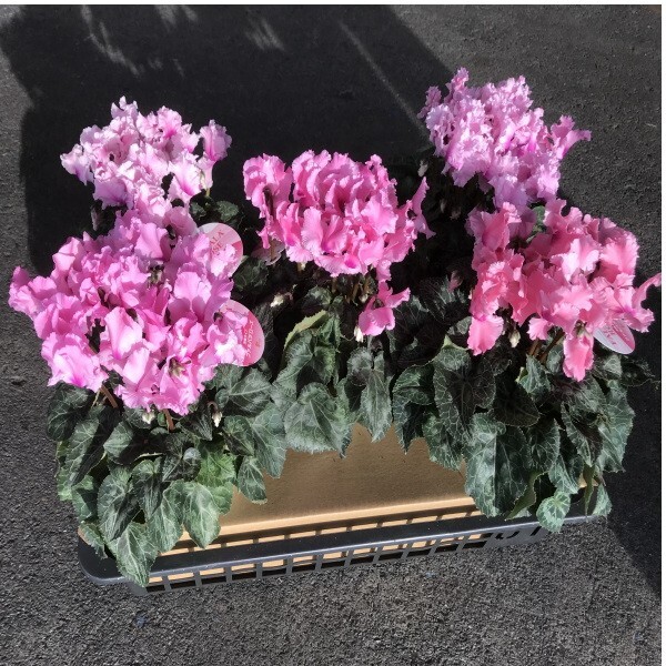 シクラメン(ファルパラローズ)5寸:(1箱3鉢入りでの販売です。)★花の卸売り販売です(販売は箱単位(単価は最小単位の価格です)。必ず1箱毎に送料かかります(送料無料ギフト及び★来店引き取りを除く))