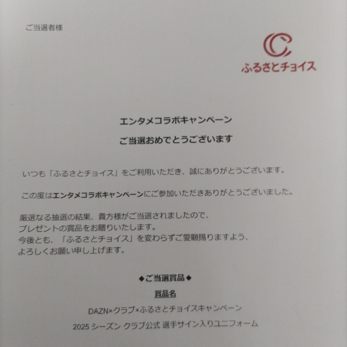 昨年末にふるさとチョイスで実施された「エンタメコラボキャンペーン」の当選品です。| 出价者 | 信用 | 价格 | 时间 |
