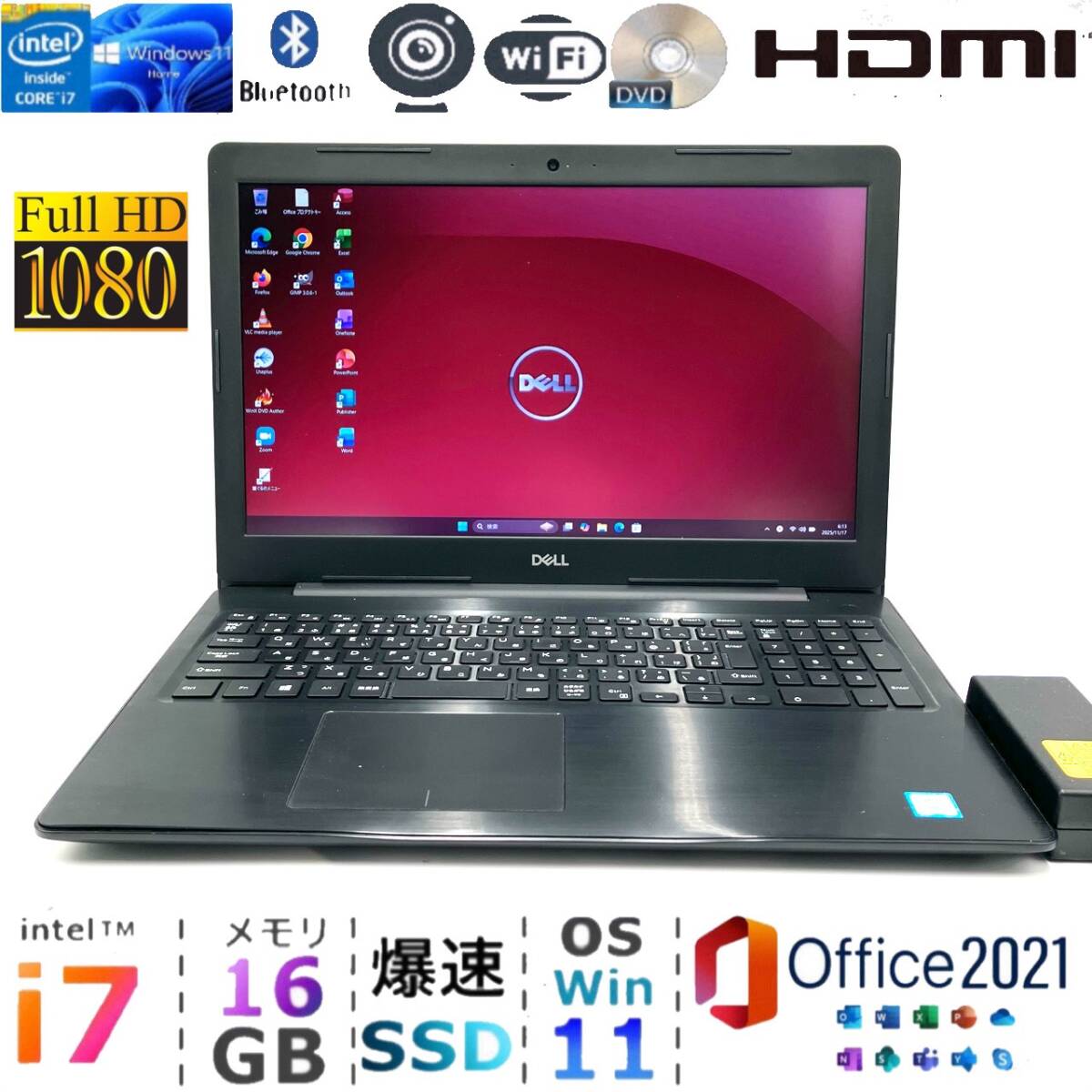 | 【配送商品の中身】 □ノートパソコン本体 (M.2 SSD、メモリ内蔵済み) □ACアダプタ □延長保証パンフレット 【スペック】 ■メーカー・型番:DELL inspiron 5570 ブラック ■インストールOS:最新版Windows11Home 64ビット ■CPU:Core i7-8550U第8世代(省電力ハイモデル) ■メモリ:DDR4:16GB(8GBx2) ■容量:爆速M.2 SSD:128GB ■光学ドライブ:DVD-RW ■Office ・Microsoft Office 2021 Professional Plus(!から購入した正規品でプロダクトキー付属しています) ■装備 ●15.6型ワイド(16:9)FHD 1,920×1,080ドット ●無線LAN対応 IEEE802.11a/b/g/n/ac準拠 有線LAN対応 ●USB3.0x2 ● HDMIポート搭載 モニターに出力して大画面での作業や動画視聴も可能 ●Webカメラ搭載 ●Bluetooth搭載 ■動作確認