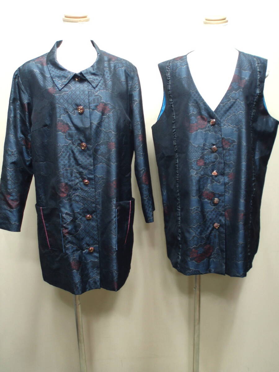 "" "L57838 和装 リメイク品 泥大島 ワンピース ジャケット アンサンブル" |