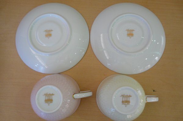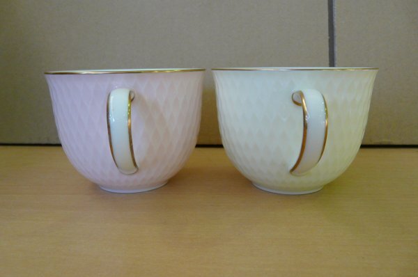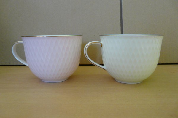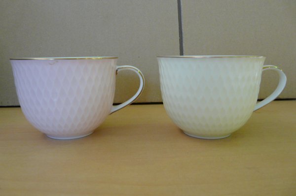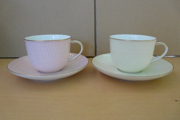 | NORITAKE ノリタケ ダイヤモンドコレクション カップ&ソーサー 2客 ピンク ホワイト ペア 白磁食器 コップ 洋食器 希少 現状品 K34SA |