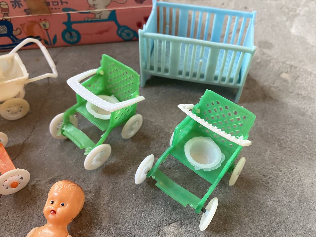 【希少 レア 1960年代 昭和レトロ HONGKONG製 セルロイドドール/ビニール製乗り物8点SET】 当時の1960年代あたりの香港製セルロイド製の赤ちゃんと小さなの乗り物のおもちゃのセットです。 箱もついており、大変希少な当時物となります。 経年劣化による色剥げなどはございます、写真を参考にしてください。 ≪月・火以外の13:00~20:00で直接お渡しも可能です。≫(東京町田市)