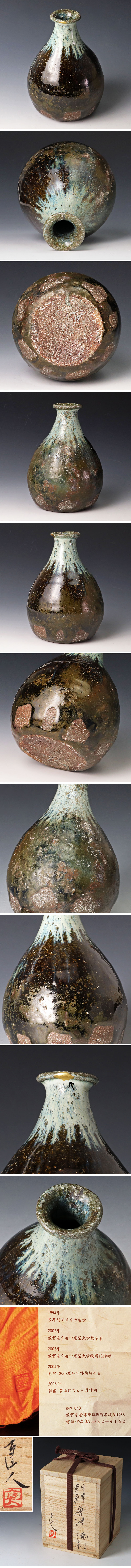 1976年 佐賀県唐津市に生まれる。1994年 アメリカに5年間留学する。2002年 佐賀県立有田窯業大学校を卒業する。2003年 佐賀県立有田窯業大学校嘱託講師として勤務する。2004年 自宅 殿山窯にて作陶を始める。2008年 韓国 蔚山にて6ヶ月作陶する。2015年 割竹式登窯を築窯。以降、各地で個展やグループ展を多数開催する。 |