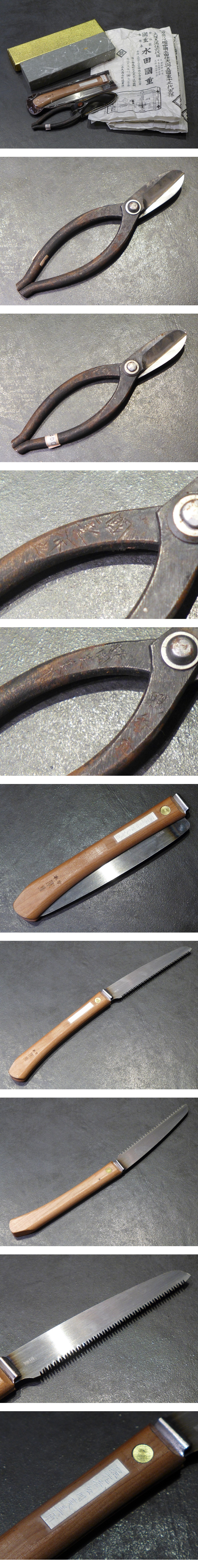 刀鍛冶 水田国重 水田國重 剪定鋏・鋸 2点まとめて。未使用かと思われますが経年保存による汚れ等あり。経年保存品の為、画像をよく見て頂き、状態に了承いただいた方のみの御入札をお願い致します。