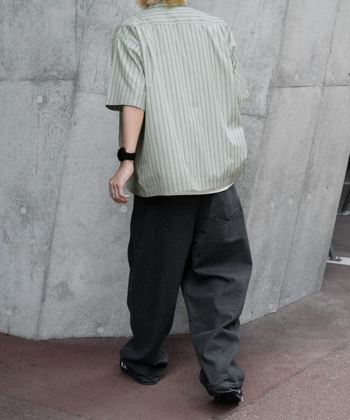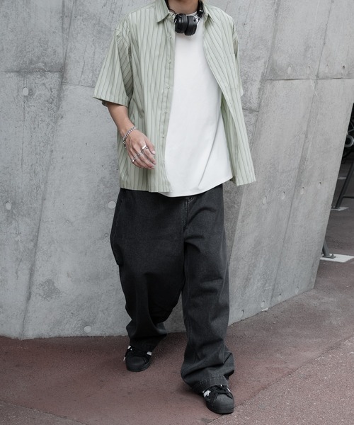 キーワード:ジーンズ メンズ ストレート ハイウエスト フルレングス ワイドパンツ 無地