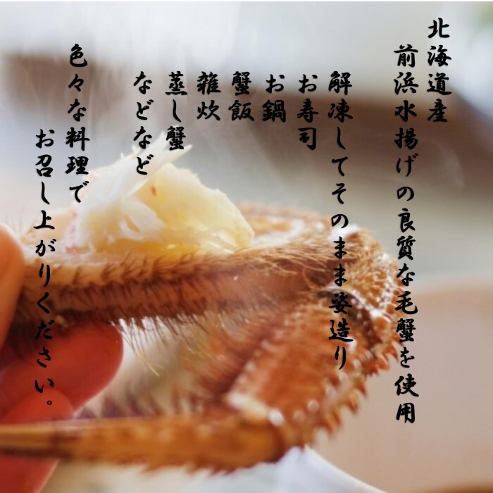 水揚げされた良質な毛蟹を鮮度抜群のままボイル加工し凍結致しておりますので