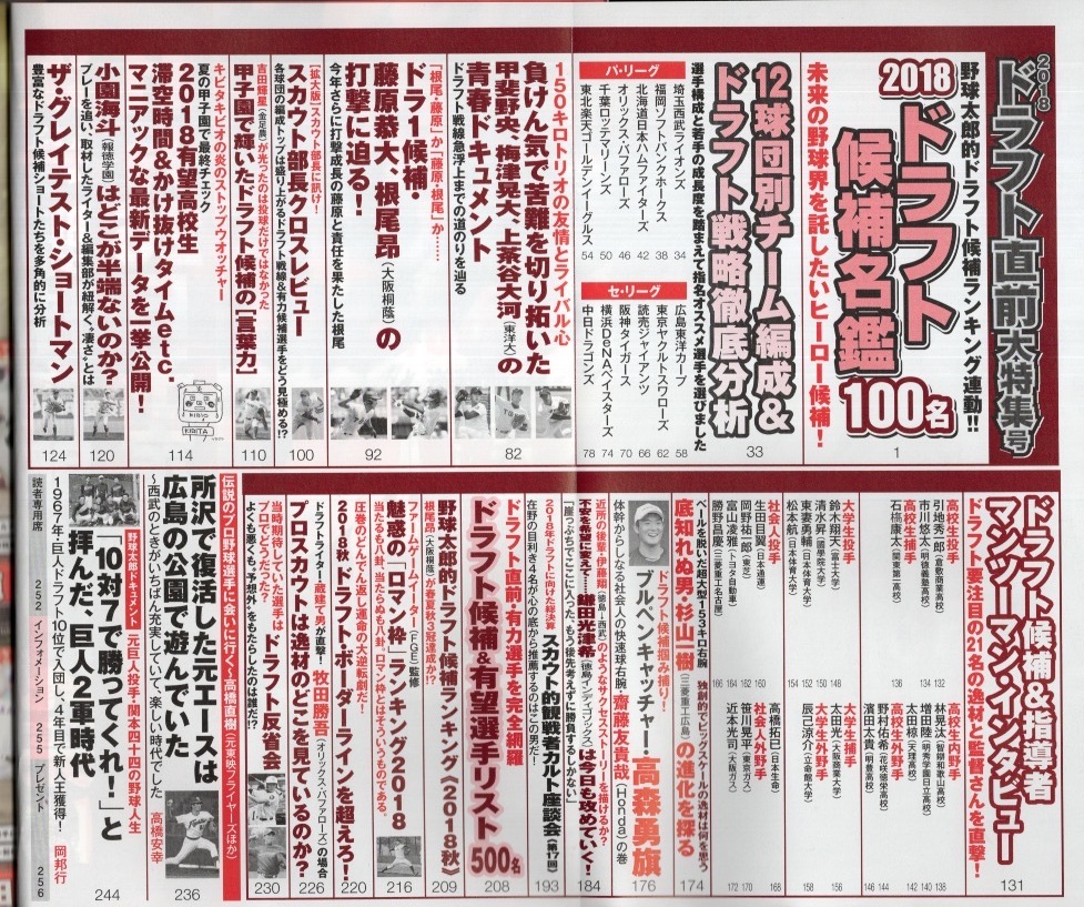 | 廣済堂ベストムック『野球太郎』No.028 2018 ドラフト直前大特集号 | |||