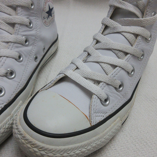 ■商品説明 ●CONVERSE LEA HI ホワイトシンプルなレザーオールスターですが、カップインソールの採用、ヒールラベルの強化に加え、柔らかく足なじみの良いソフトレザーをアッパーに使用することでスペックアップを図っています。