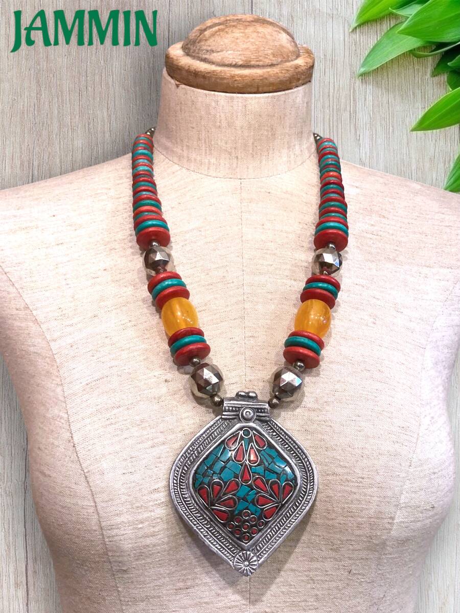 トルコ石とコーラルを散りばめたシルバープレートを使った個性的なネックレスです。| 出价者 | 信用 | 价格 | 时间 |