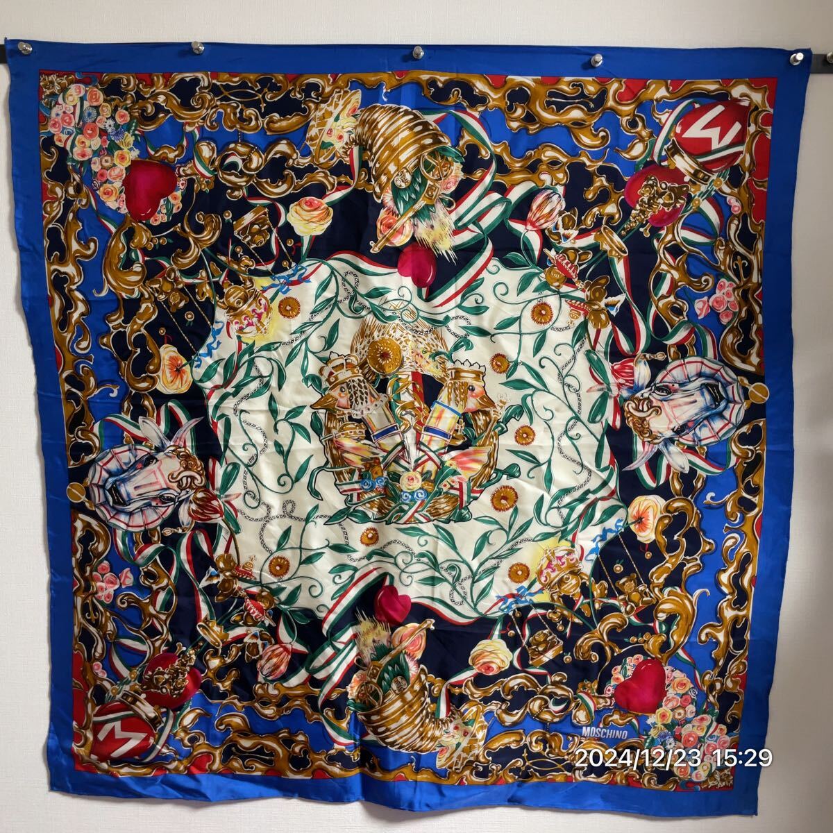 MOSCHINO モスキーノ クマ 花 ハート 羊 クラウン 総柄 大判 シルク スカーフ 装飾品