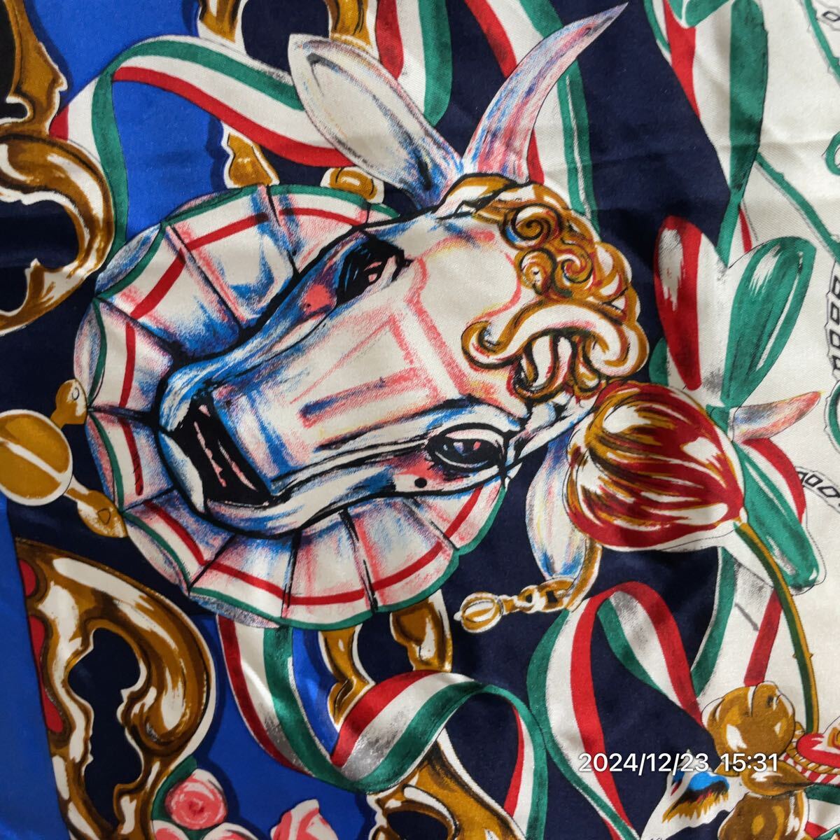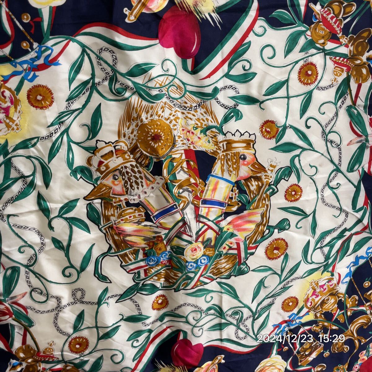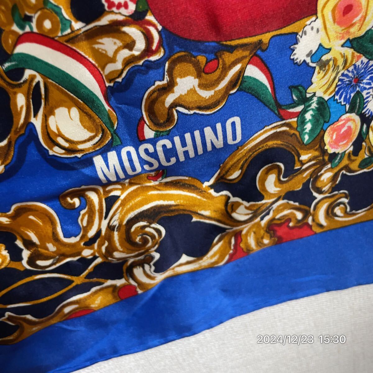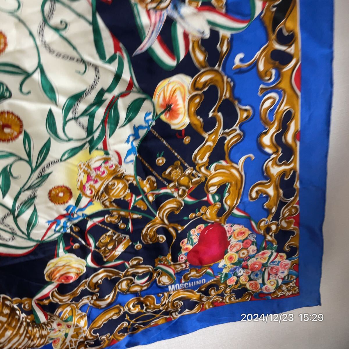 MOSCHINO モスキーノ クマ 花 ハート 羊 クラウン 総柄 大判 シルク スカーフ 装飾品 [浏览原始页面]