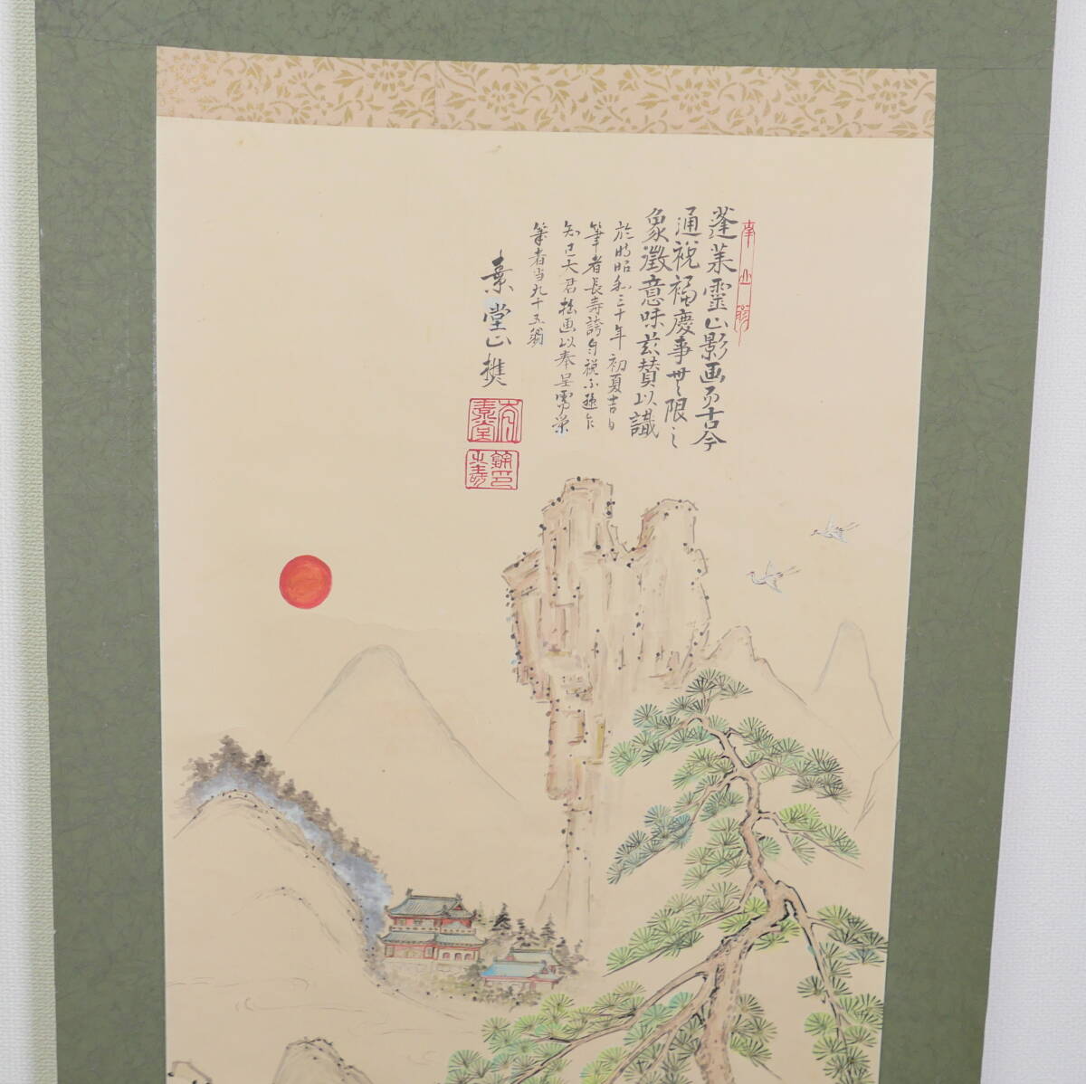 | ♪中古★掛軸 素堂銘 山水図 行書 | ||