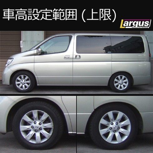 | LARGUS車高調のスタンダードモデルとなるSpecSと輸入車向けのSpecSI、軽自動車向けのSpecK、ローダウンに特化したSpecD、別タンク式のハイエンドモデルSpecRS、スポーツ走行に特化したSpecSRの全6種類の車高調をラインナップ。 |