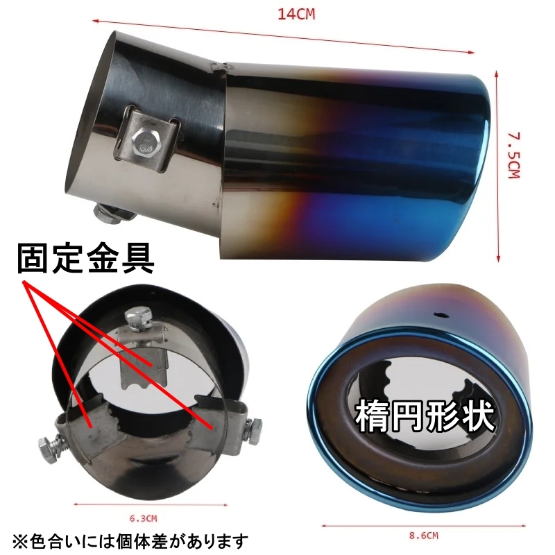 | 商品内容 汎用マフラーカッター 特徴 ・装着可能マフラー外径:38mm~58mm ・出口数:1 ・テール形状:楕円形状 ・テールカット:斜め ・取付角度:斜め ・材質:全タイプステンレス製になります ・選べる4タイプ:シルバー/チタンブルー/マジョーラ/ブラック(塗装済) ※チタンブルーとマジョーラは色合いに個体差があります 適合確認 ※タイトルにある車種は参考車種になります。 ※タイトルにある車種でも排気量やグレードによって マフラーの外径やリアバンパーの形状が異なります。 必ずマフラーの外径とリアバンパー形状 及び商品の寸法をご確認ください。 取付に関する注意事項 ・専門業者様による取付を推奨しております。 ・火傷防止のためマフラーが冷えた状態で作業してください。 ・脱落防止のため定期的に増し締めしてください。 ・取付、使用に関わるケガ、事故等につきまして 弊社は一切の責任を負いかねます。 |