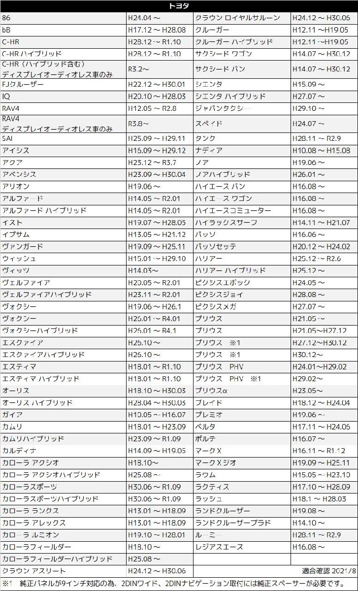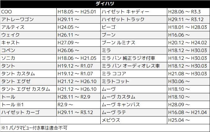 ![]() ■オーディオハーネス ワイドパネル 車速コネクター セット 市販のナビ・オーディオデッキの取付に トヨタ・ダイハツ・スバル用 ワイドパネル・車速コネクター付き ■オーディオハーネス ハーネス説明書付き 日本国内仕様カプラー トヨタ・ダイハツ・スバル車に社外品のオーディオ・ナビゲーションを取り付けるための配線キットです。 車両側のオーディオハーネスにカプラーオンするだけで社外品を取り付け可能な状態にできます。 接続端子を日本国内仕様としており、中国製品などによる寸法違いの抜け、接触不良を防止。 取付キットはバラバラにならないように一つに梱包しております。 トヨタ・ダイハツ・スバル車のオーディオカプラー形状10ピン&6ピンの車種に対応しております。 ディーラーナビ付き車及びオーディオレス仕様の車両に対応しています。 結線案内図・取扱説明書・保証書付き。 バックアップ(+B)、アクセサリ(ACC)、イルミネーション(ILLMI)を2極に分岐していますので、 ETCや後付けルームランプなどの取付に便利です。 ■注意事項 ・適合表はあくまで参考です。車種や年式、グレードによっては使用できない場合もございますので、適合につきましてはご落札様でお調べいただき、ご判断いただきますようお願い申し上げます。 ・幅広い車種に装着できるように設計されていますが、装着車種によっては使用できない場合がございますので、適合に自信のない方や作業に自信のない方は専門店などに依頼、相談することをお勧めします。 ・配線キットに車両側付属のオーディオステー(車両取付金具)は含まれておりません。 ・配線キットに車速・パーキング・リバースコネクタは付属しません。 ・他自動車制作会社の純正オーディオを取り付けることはできません。 ■ワイドパネルスペーサー ワイドサイズナビ・オーディオ枠に社外品ナビを取り付ける際に左右にできる隙間を隠す汎用パネルです。 車両側オーディオ取付枠の幅が20cmの車両にご使用ください。 画像のように左右1セットです。 ■注意事項 ・当商品に車両側付属のオーディオステー(車両取付金具)は含まれておりません。 ・車種や取り付けるナビ・オーディオによっては多少の隙間が空く、または使用できない場合があります。 ・記載の適合表はあくまで参考です。適合表に記載以外の適合情報は当店ではわかりかねます。 ・適合につきましてはご落札者様でお調べいただき、ご判断いただきますようお願い申し上げます。 ・幅広い車種に装着できるように設計されていますが、装着車種によっては多少の加工が必要になる場合がございますので、作業に自信のない方は専門店などにご依頼されることをおすすめいたします。 ■車速コネクター 社外品のナビゲーションを取り付ける際に、車速・リバース・パーキングの5極コネクターを配線に変換するキットです。 車両側の車速(5極)コネクターにカプラーオンするだけで社外ナビの車速・リバース・パーキングを簡単に接続可能な状態にできます。 各線にSPEED・REVERSE・PARKINGのタグをつけておりますので、誤接続の心配がありません。 REVERSE(リバース)線は2極に分岐しておりますので、バックカメラなどを取り付けるのにとても便利な仕様となっております。 車速カプラー(5ピン)付き車に対応しております。※逆カプラーではありません。 車両側のオーディオハーネスにカプラーオンするだけで社外品を取り付け可能な状態にできます。 ![]() ![]() ![]() |