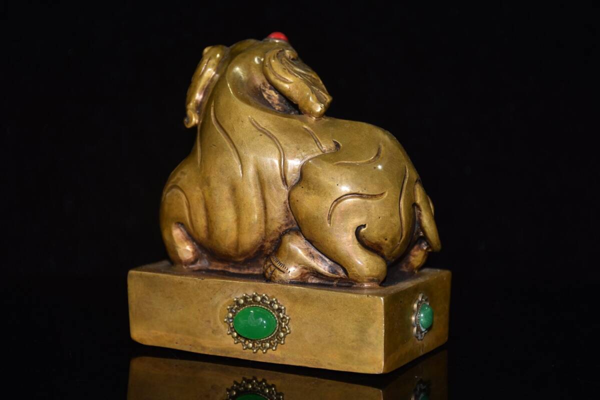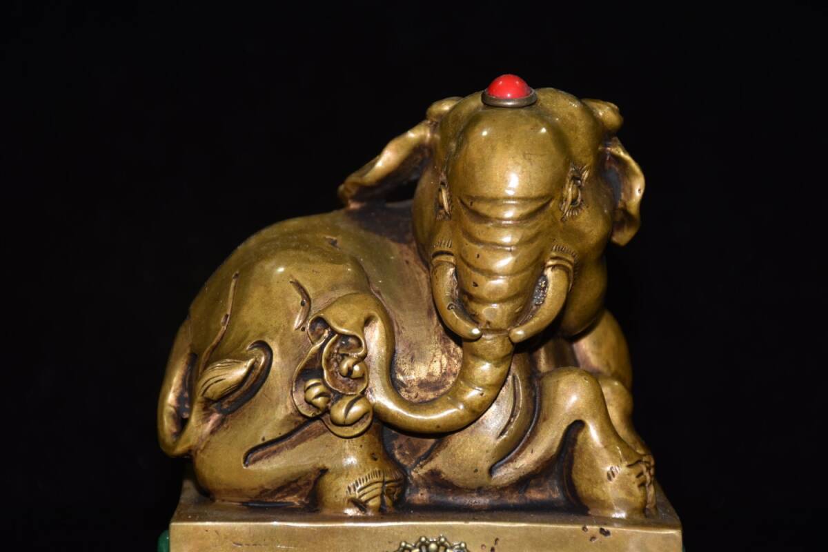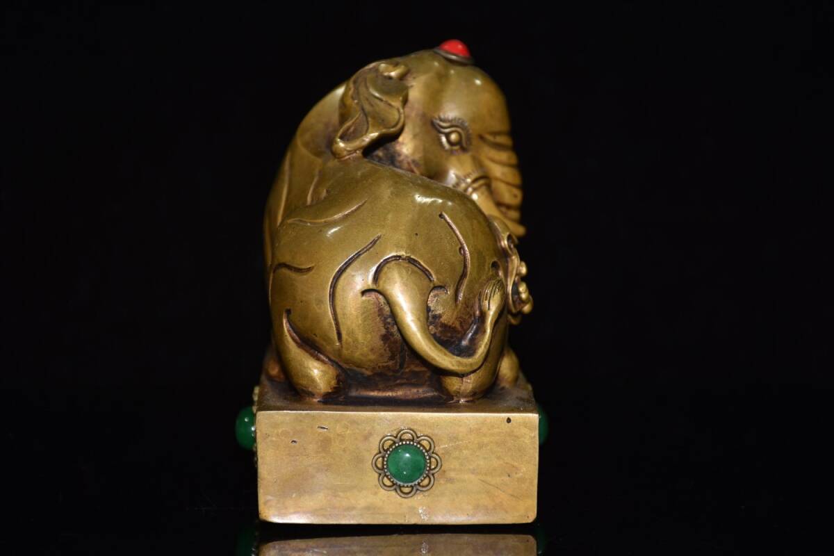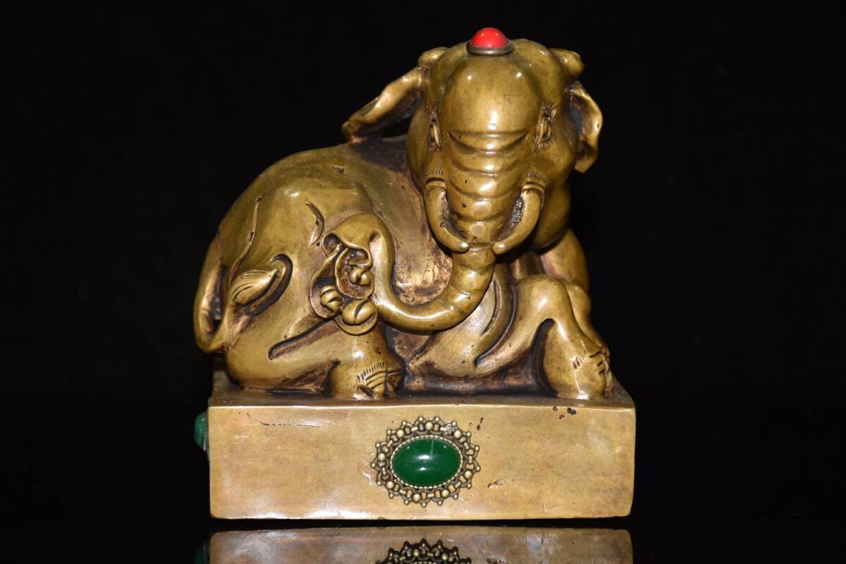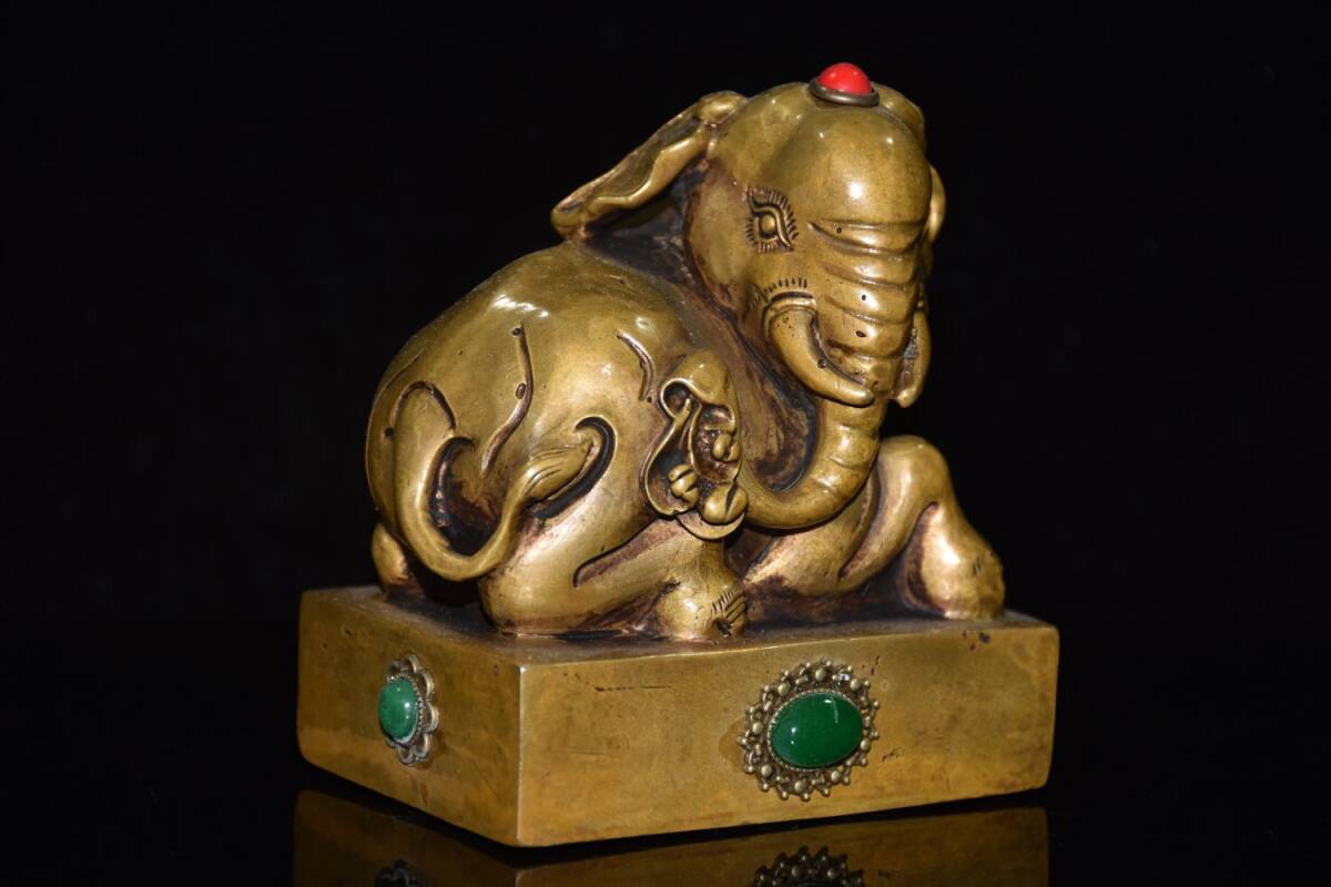| 【古寶奇蔵】銅製・寶石嵌・象神印章・置物・賞物・古董品・中国古玩・時代物・希少珍品・中国時代美術 |