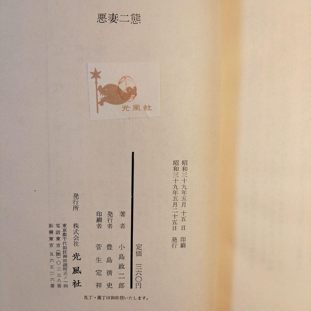 昭和39年に光風社から出た、小島政二郎著「悪妻二態」です。初版。| 出价者 | 信用 | 价格 | 时间 |