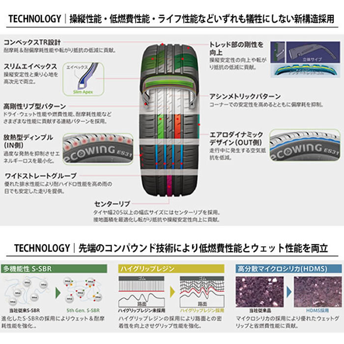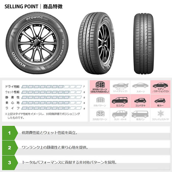 | ご覧いただき誠にありがとうございます。 お急ぎの場合は入札前に質問欄で予定に間に合うかどうかの確認をしてください。 迅速、丁寧を心掛けております。ご安心して取引ください。 タイヤメーカー:クムホタイヤ エコウィング ES31