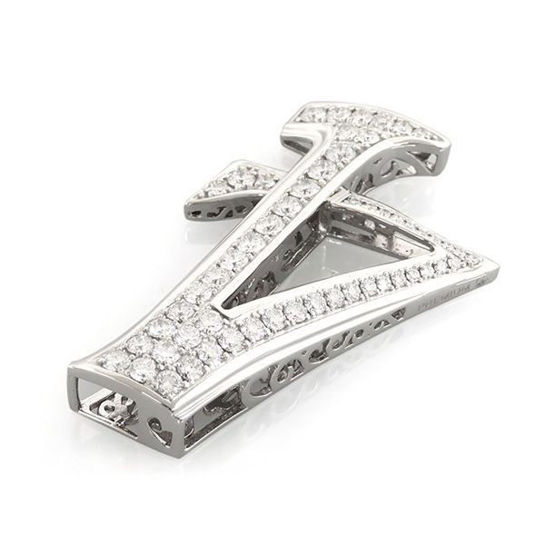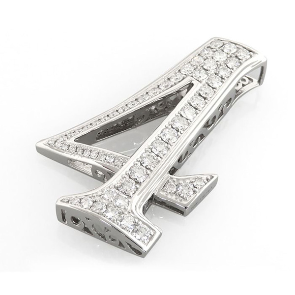 | 商品説明 | 数字の「4」をモチーフにした大きめペンヘッドです。普通の大きさでは物足りない、胸元に大きなアクセントが欲しい方にピッタリです。質の良い3カラット分のダイヤモンドを贅沢に使用しております。 |