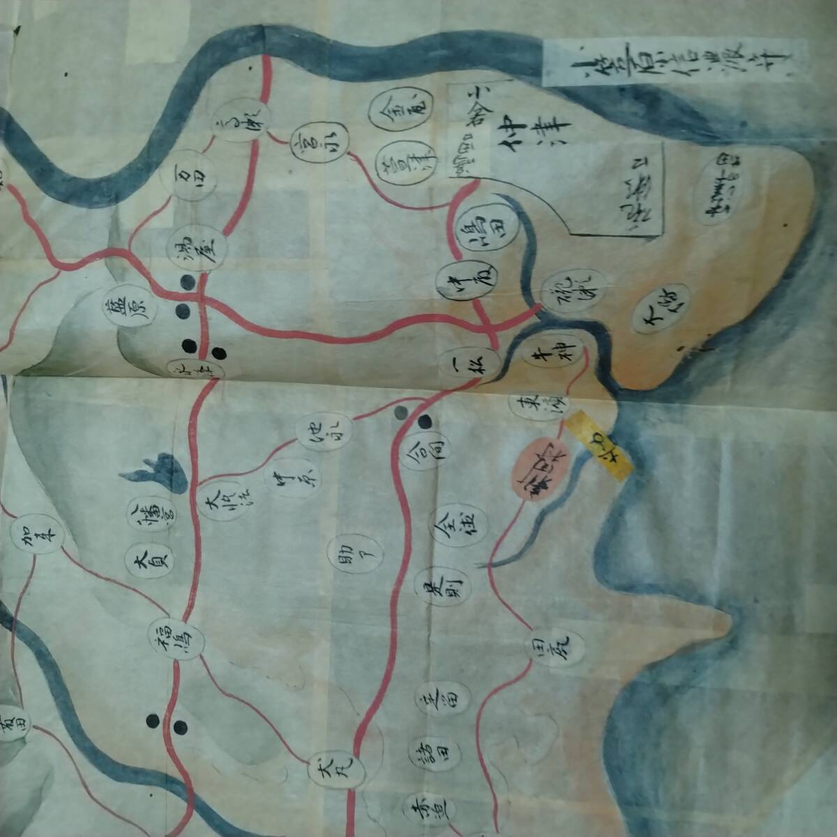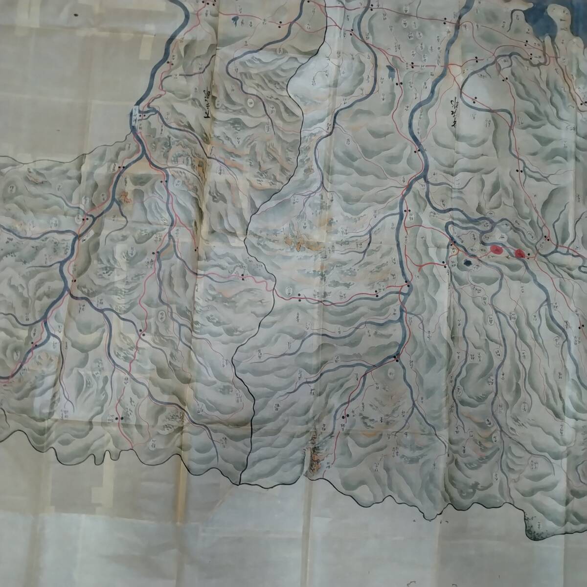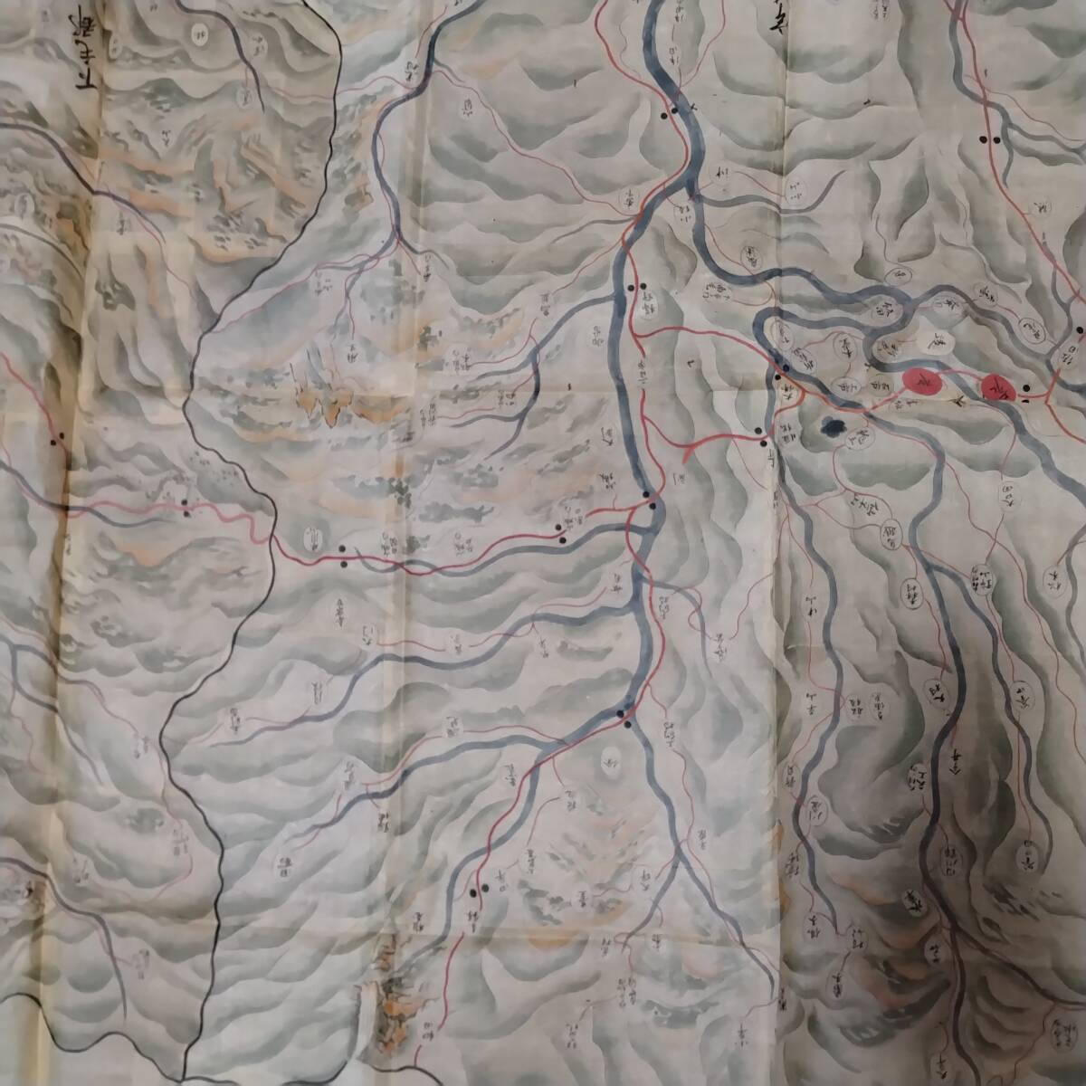 当方の先祖より代々受け継がれ曽祖父蔵にて保管されておりました。曽祖父から祖父、父へと渡り当方が譲り受けました。本来ならば手放すものではなく重要文化財類の歴史的な逸品です。私の家系の家宝です。博物館より数度に渡り貸出展示依頼もございましたがお断りさせて頂いておりました。約205×147と2枚が一つに連なり彩色美麗、誠に貴重な絵図です。お詳しい方、歴史関係に携わっております方ならなおのこと価値を見いだしていただけるかと存じます。