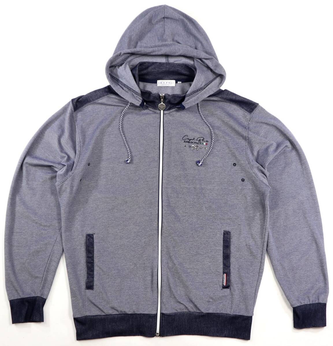 ※大切なお知らせがございますのでご入札やご質問前に必ず最後の注意事項までご覧ください。 ●ブランド CAPRIのジップアップパーカーです。 サラリとした肌当たりのドライ鹿の子素材を使用した薄手のパーカーです。フードは取り外し可能、キラキラ光る胸のラインストーンがアクセントになっています。 株式会社アイ・ティ・オージャパンの正規品です。 ●カラー 杢ネイビー ●素材 ポリエステル55,綿45 ●表記サイズ (50) LL相当。下記の実寸もご確認ください 着丈(背中の襟元から裾まで)67 身幅(左右脇の付け根を直線)60 袖丈(肩の縫い目から袖先まで)62 肩幅52 (多少の誤差はご了承ください) ●コンディション USEDになりますが着用回数は少ない感じで大変良好です。ダメージやスレほつれ・穴破れ・汚れ・汗染み・色褪せなどもなく、しっかりした綺麗な状態ですので今後も十分普通に問題なく着用いただけます。 |