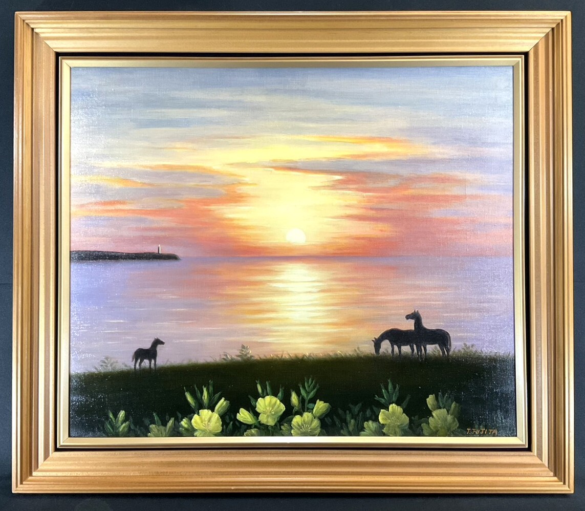 真作■油彩■藤田東光■『夕暮れ』■昭和56年■20F大型希少風景画■全日肖名誉会員 師:川島実 文部大臣奨励賞