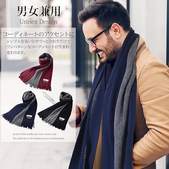 • イタリア製高級アクリル繊維は非常にきめ細く軽量でチクチクしたりしません。保温性も高く冷たい外気を遮断し熱が逃げるのを防ぐのでとても暖かく着用できます。