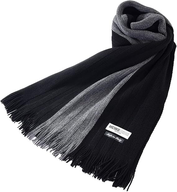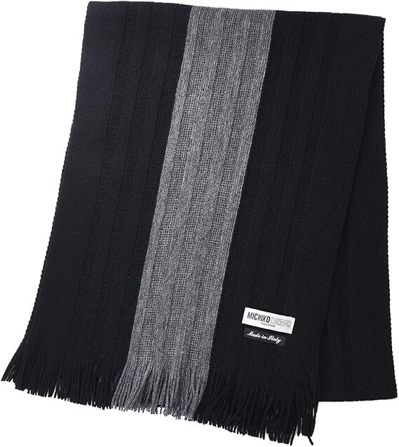 [MICHIKO LONDON] ミチコロンドン ブランドマフラー イタリア製 メンズ ストール 男女兼用 平織 ストライプ 防寒 黒