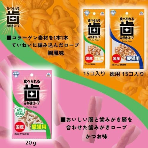 -/-/9003455876009・パッケージ個数:1・コラーゲン素材を組み込んで作った噛み応えのあるロープ!商品紹介 ・コラーゲン素材を1本1本ていねいに編み込んで作った噛み応えのあるロープです。 ・よく噛むことで、歯垢、歯石をつきにくくし、お口のニオイ、スッキリ ・鯛のエキスがしみ込んだ食いつき抜群のロープ 原材料・成分 【原材料】 コラーゲン、鯛エキス、酵母エキス、シーフードエキス、D-ソルビトール、トリポリリン酸Na 【成分】 たん白質40%以上、脂質0%以上、粗繊維10%以下、灰分6%以下、水分25%以下 【エネルギー】 約2kcal/1コ| お取引きについて【必ずご確認下さい】 | ||||||||||||||||||||