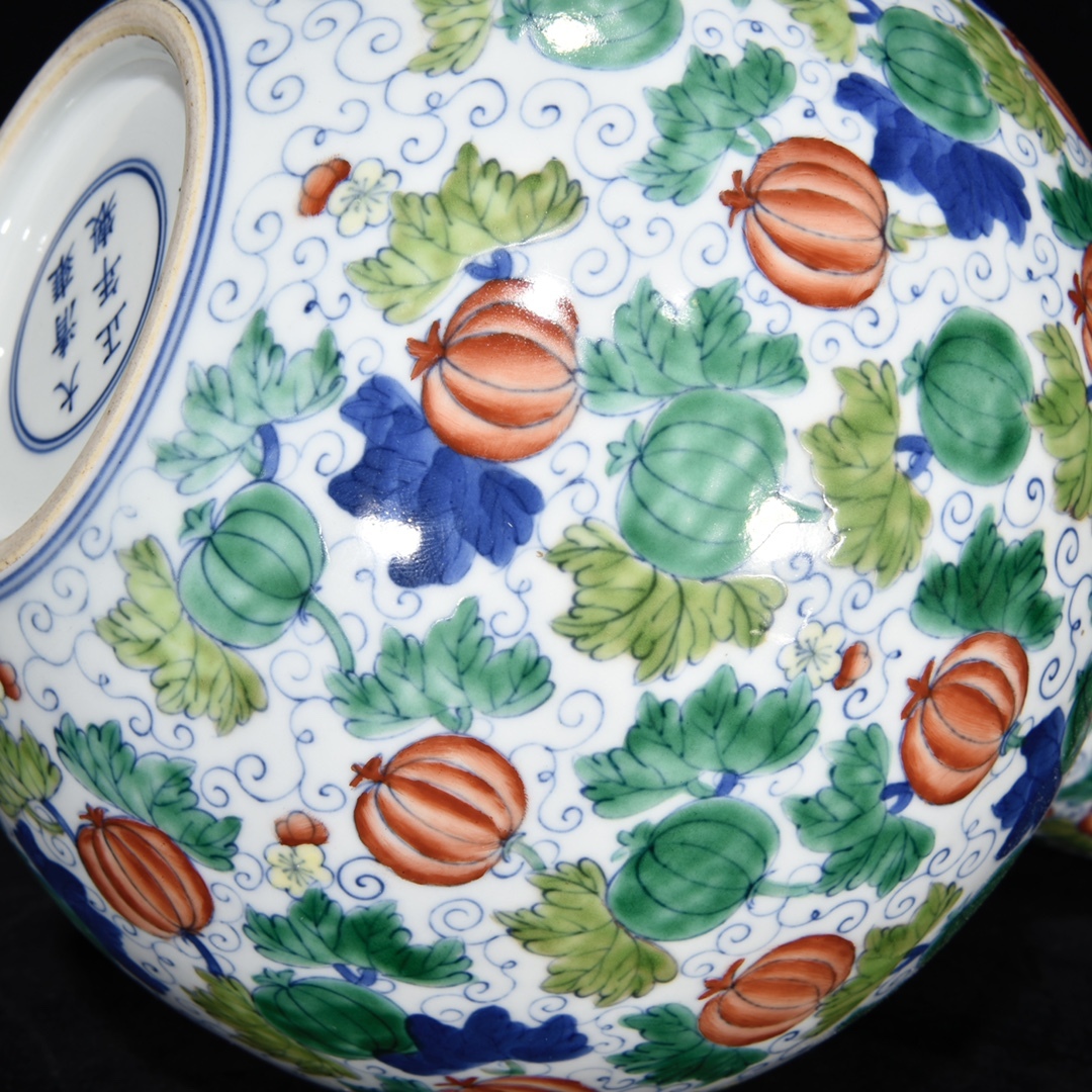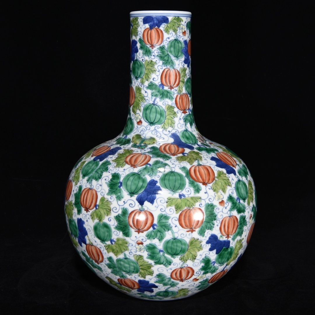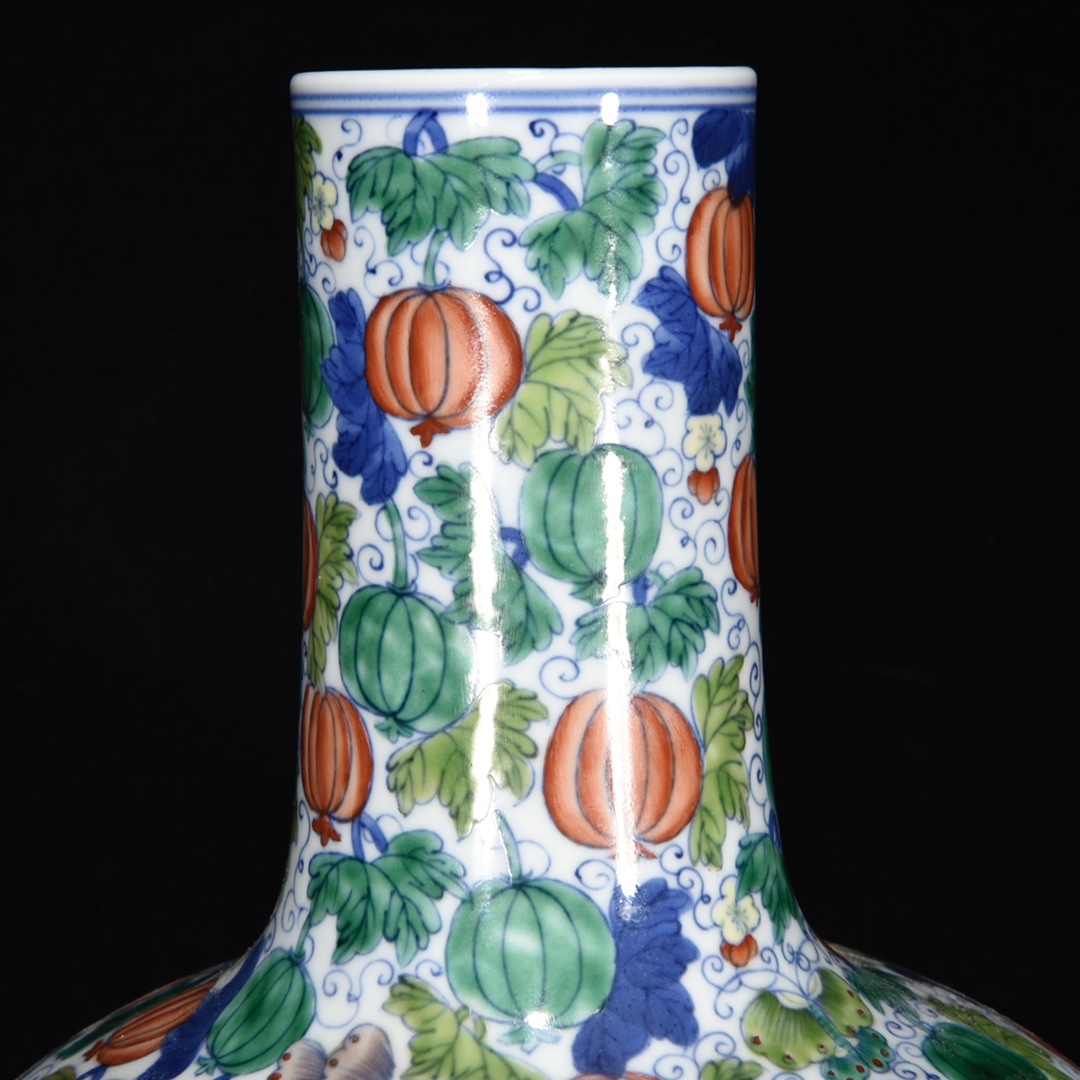 | 【古寶奇蔵】清・雍正年製款・古陶瓷品・粉彩・瓜果紋・天球瓶・陶藝・古董品・中国古玩・時代物・希少珍品・中国時代美102460 |