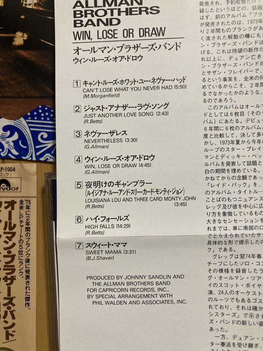 ○《帯付》【オールマン・ブラザーズ・バンド】『ウィン・ルーズ・オア・ドロウ(WIN,LOSE OR DRAW)』| 出价者 | 信用 | 价格 | 时间 |