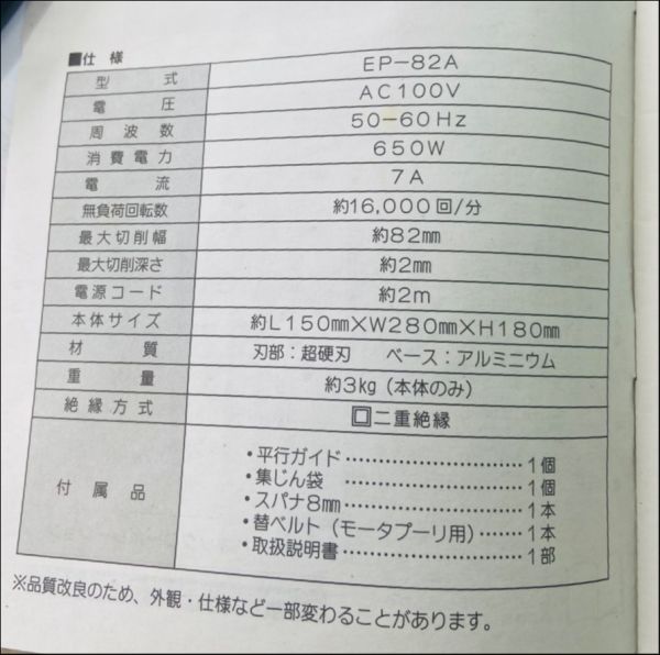 | 製品情報 | 電気カンナ 【100V 研磨機 集じん袋付き 替刃式 】 |