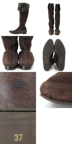 | すっきりとしたフォルムが魅力のファスナー無しデザイン☆ 折り返し部分のレザーがアクセントになっています。 カジュアルからエレガンススタイルまで、 幅広いコーディネートに合わせて頂ける シンプルデザインでお薦めです♪ つま先やかかとを中心に毛羽立ちが見られ、 右足の折り返し部分に目立たない程度の小さな薄汚れがございます。 ヒール高1.5約cm 履き口&ふくらはぎ周り約34cm 筒長さ約39cm 【サイズ】:(37) 【素 材】:(スエード) 【 色 】:(こげ茶) 【程 度】:(AB) 管理番号 8524-20131217-001 101 057 | ||||
